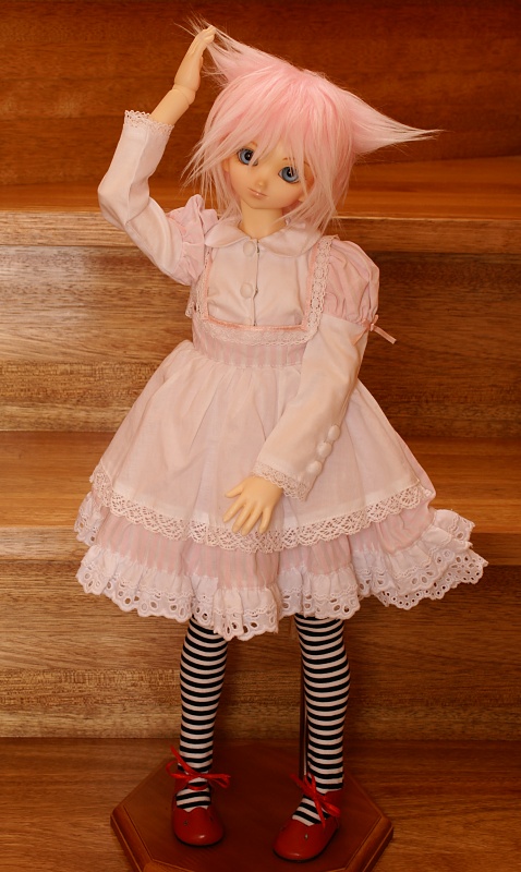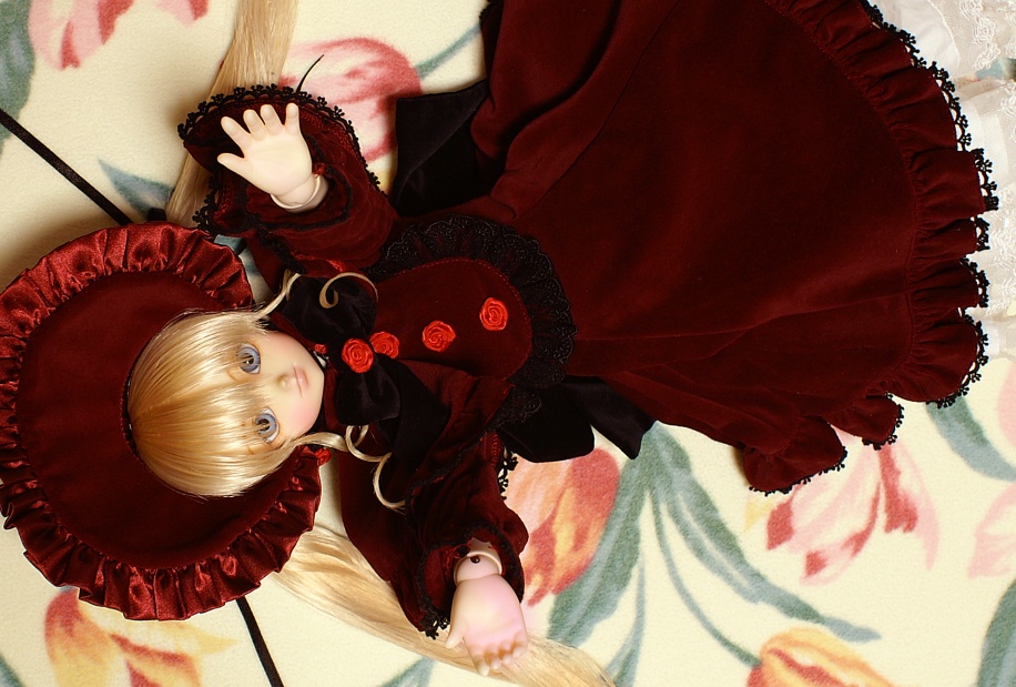 この服はアゾン製なのでノアドロームの翠星石服同様、オビツ用を前提としてるため、ウェストの細いSD13少女分割ボディの凌子でギリギリ着れました。
