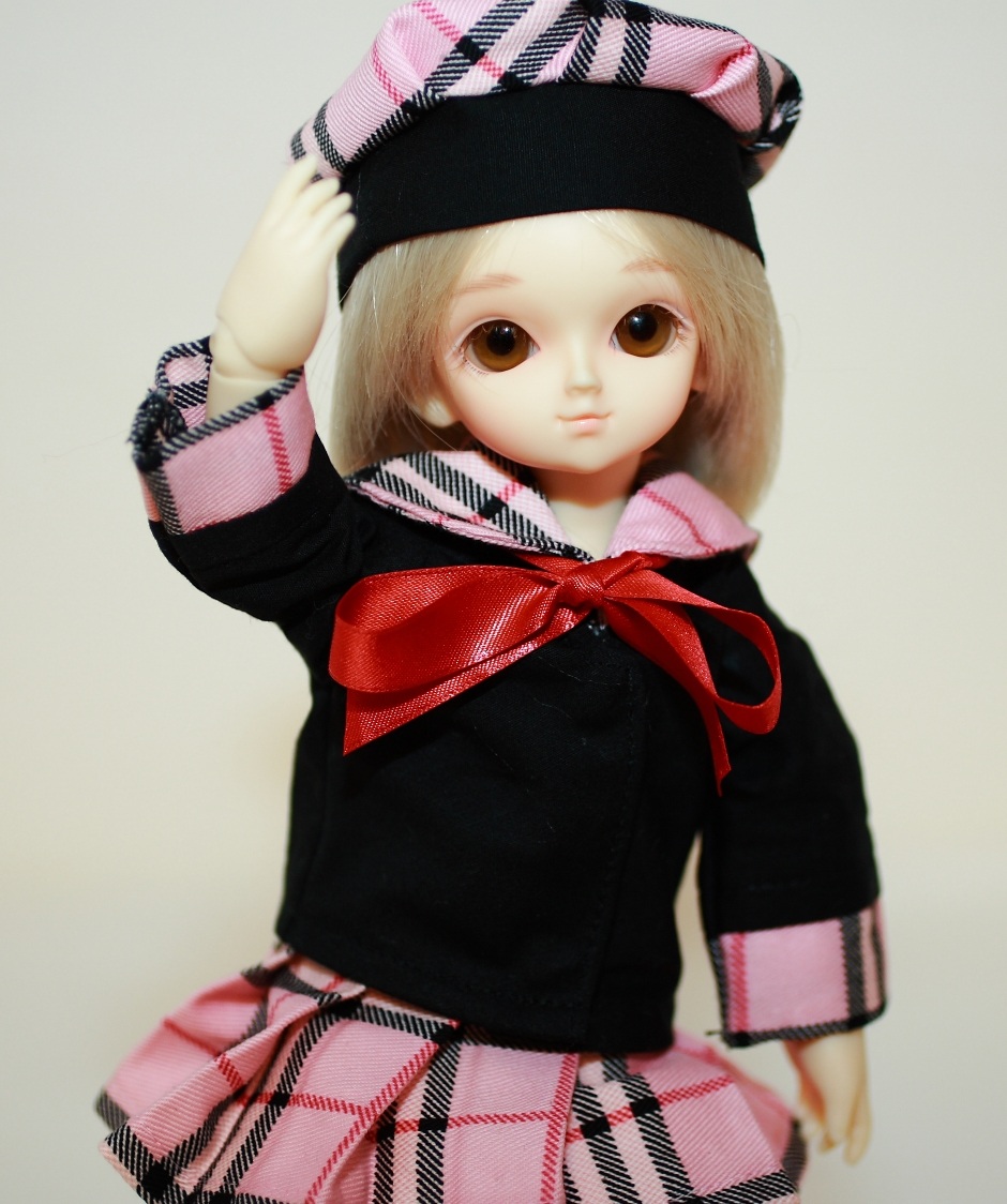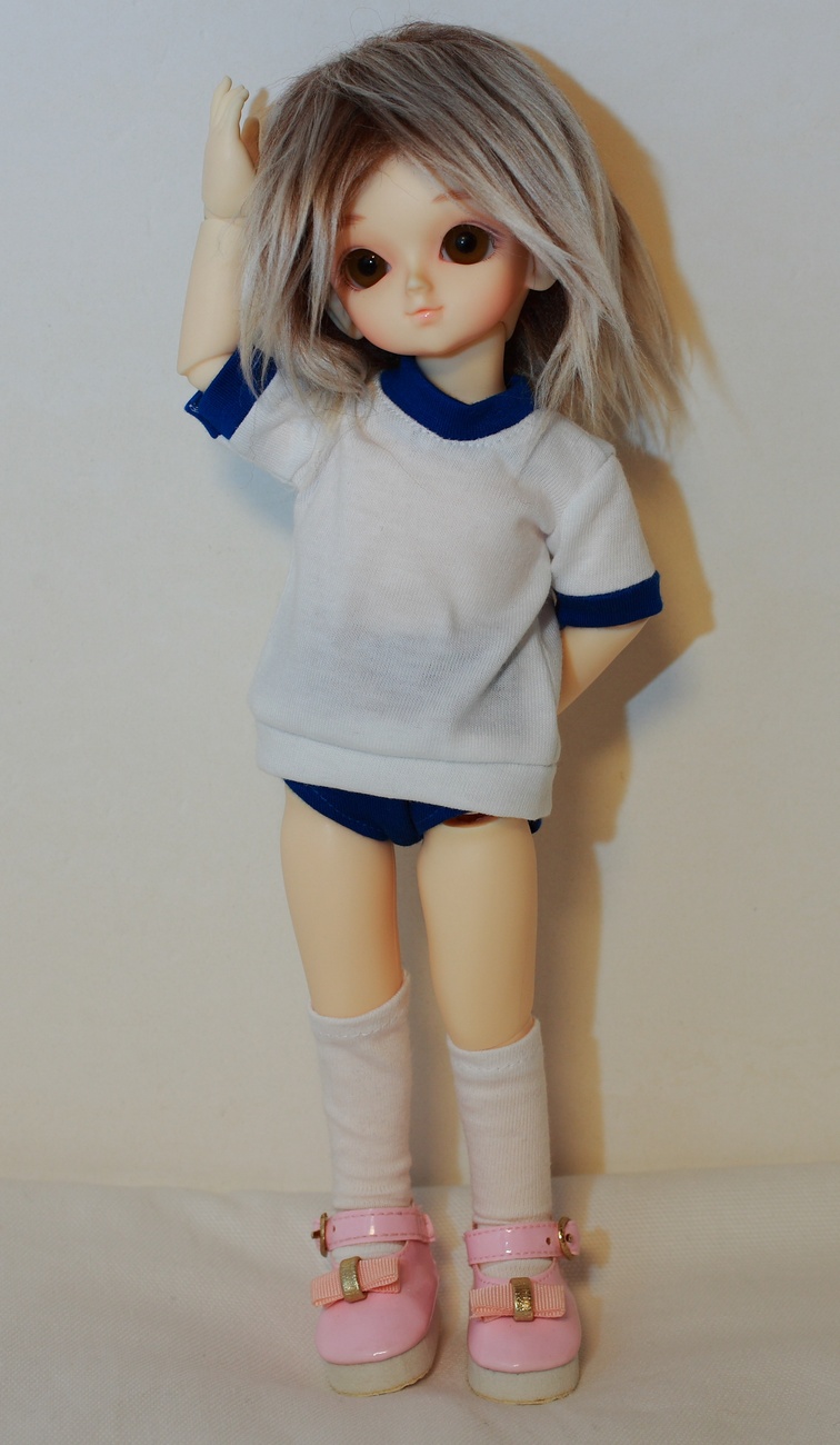 フリフリのドレスとかも有ったんですが、あんまりビシッと決まった服着せちゃうと、以後着替えさせるのがためらわれたりするので、あくまでカジュアルに「セーラー服」と「体操服」あと「ボアウィグ」とか。